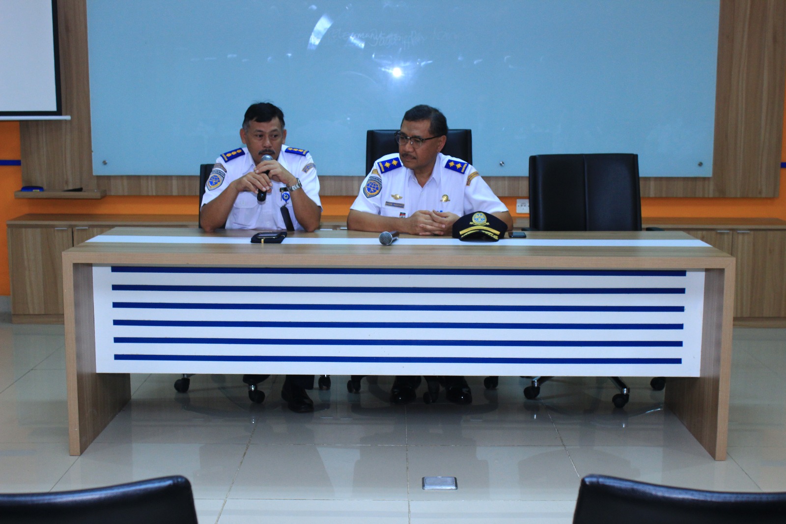 Kepala Pusat Pengembangan SDM Perhubungan Udara (PPSDMPU), Bapak M. Basuki Mardianto, mewakili Kepala Badan Pengembangan Sumber Manusia Perhubungan, didampingi Kepala Bagian Administrasi Akademik dan Ketarunaan (Ka. BAAK) mewakili Ketua STPI, memberikan pengarahan kepada seluruh Dosen STPI.