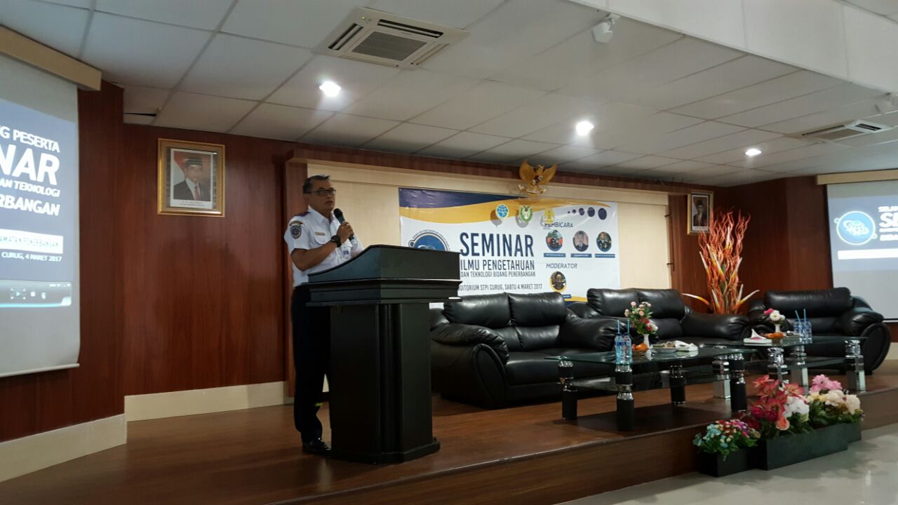 Ketua STPI Bapak Novyanto Widadi, SIP membuka Seminar Ilmu Pengatahuan Bidang Penerbangan  di kampus STPI Curug, Sabtu (4/3/2017).