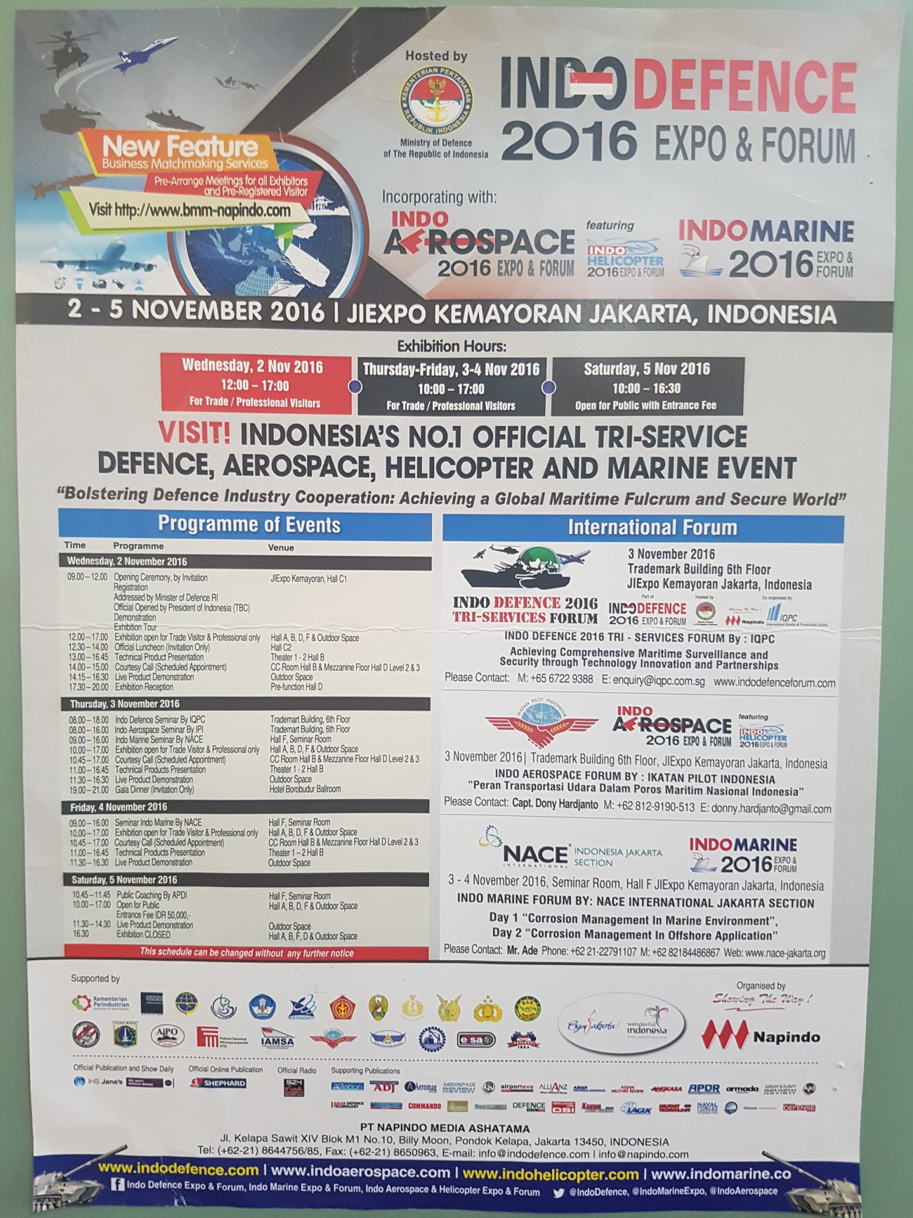 Rencana penyelenggaraan Indo Defence, Indo Aerospace (featuring Indo Helicopter) dan Indo Marine 2016 Expo & Forum yang akan diselenggarakan pada tanggal 2 s.d 5 November 2016 di J.I. Expo Kemayoran Jakarta yang direncanakan akan dibuka oleh Bapak Presiden RI.