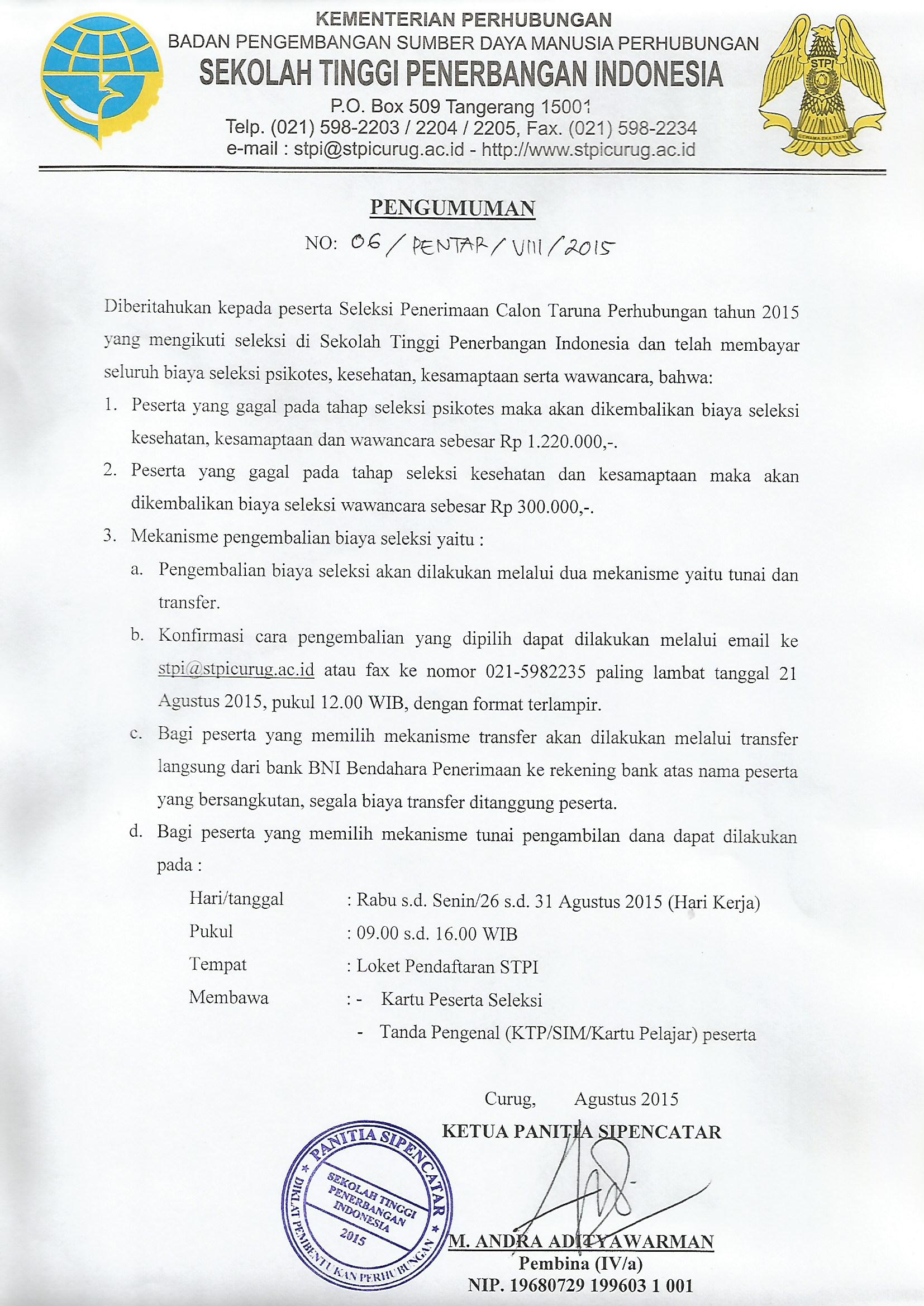 Disampaikan kepada peserta seleksi SIPENCATAR 2015 yang dinyatakan gagal, agar mengunduh dan melengkapi file di bawah ini :